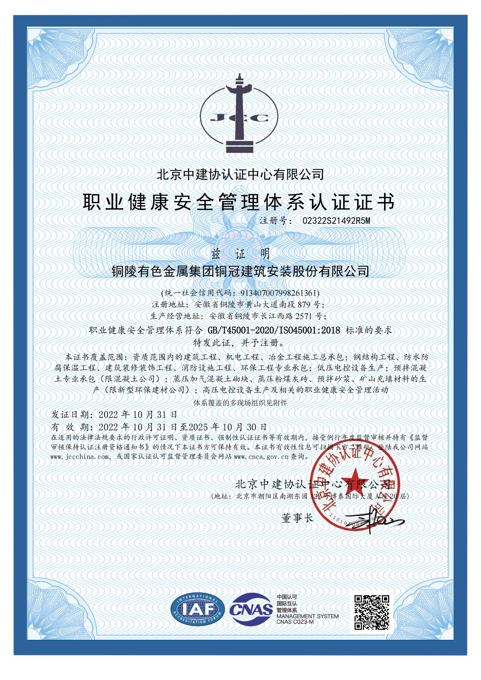 有色金屬工業(yè)建設工程質(zhì)量檢測機構(gòu)資質(zhì)證書